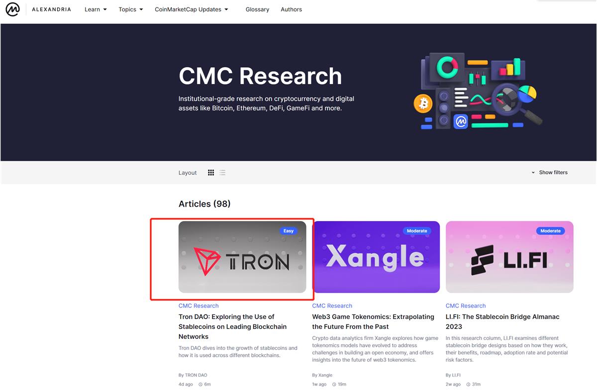 加密行业权威平台 CMC 重磅上线波场 TRON 稳定币研报