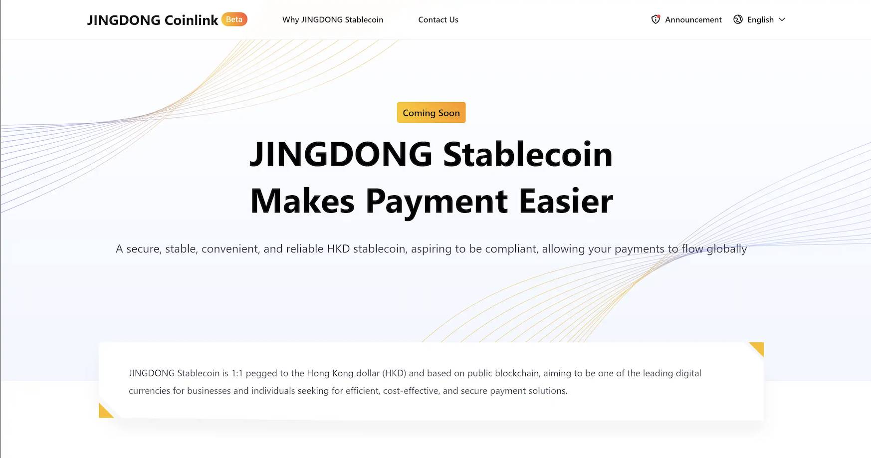京东币链科技 (香港) 是京东科技集团的子公司,是京东旗下唯一潜在的稳定币发行人。据官网信息,京东稳定币是一种基于公链并与港元 (HKD) 1:1 挂钩的稳定币,将在公共区块链上发行。