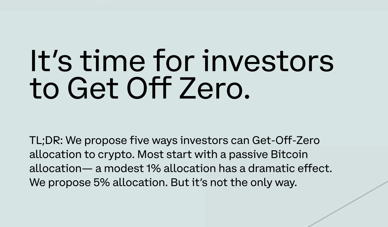 正如政府通过谨慎的政策调整将加密货币带入主流一样,机构投资者也在评估将加密技术纳入投资组合的框架。这一进程才刚刚开始,而第一步始终是相同的:摆脱零加密资产配置。
