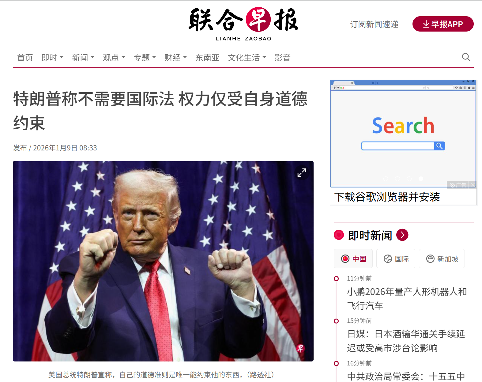 TechFlow, 9 janvier — Selon Lianhe Zaobao, le président américain Trump a affirmé le 9 janvier que « ses propres principes moraux » constituaient la seule limite à ses actions militaires menées à l’échelle mondiale.
