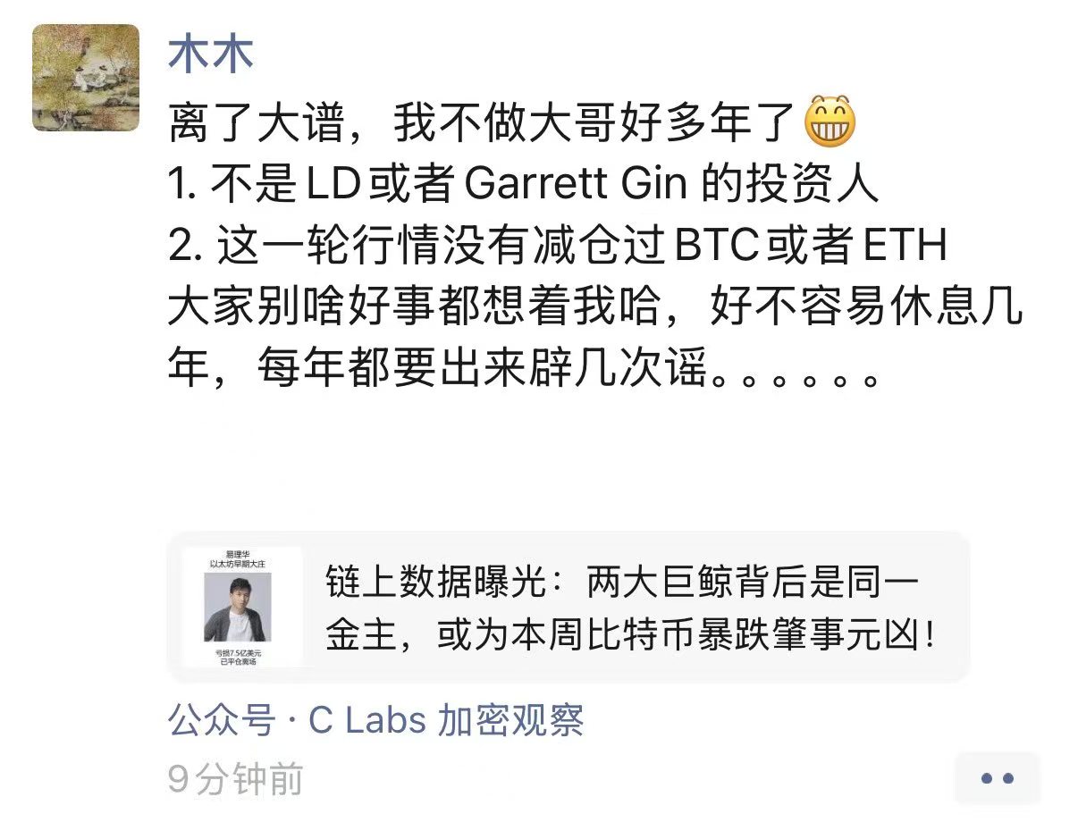 TechFlow rapporte que, le 8 février, Li Lin, fondateur de Huobi, a publié un message indiquant : « Je ne suis ni investisseur de LD ni de Garrett Gin. Je n’ai pas réduit mes positions en bitcoin ou en ether lors de cette vague haussière, et je suis en retrait depuis plusieurs années. Toutefois, je dois presque chaque année démentir des rumeurs circulant à mon sujet. »