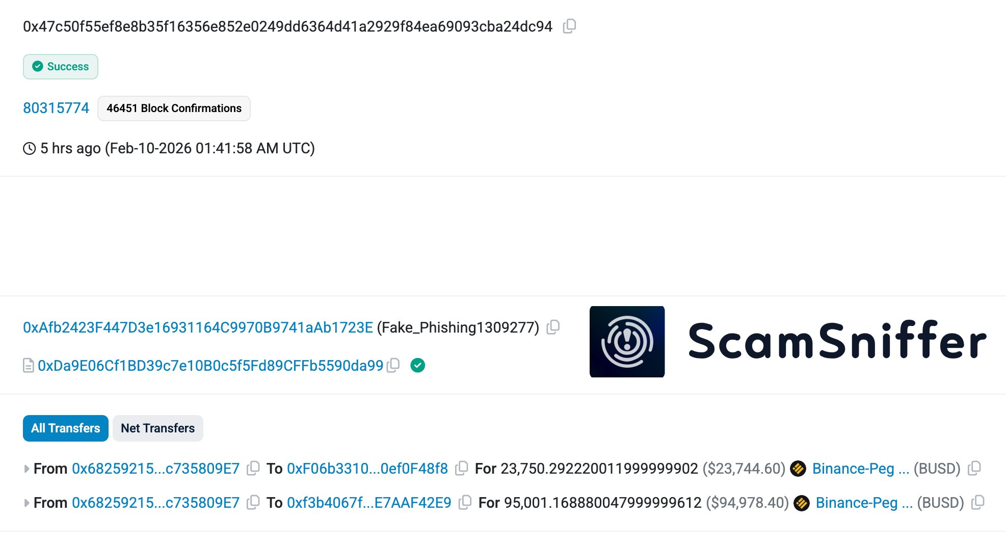 TechFlow rapporte qu’un utilisateur a perdu 118 785 dollars américains en BUSD sur la chaîne BSC il y a environ cinq heures, après avoir signé une transaction malveillante « increaseAllowance », selon le suivi effectué par Scam Sniffer (@realScamSniffer) le 10 février. Des analystes soulignent que, bien que la plupart des utilisateurs soient vigilants face aux signatures « permit » et aux appels « approve », l’appel « increaseAllowance » comporte également des risques pour la sécurité, même si son nom est moins courant.