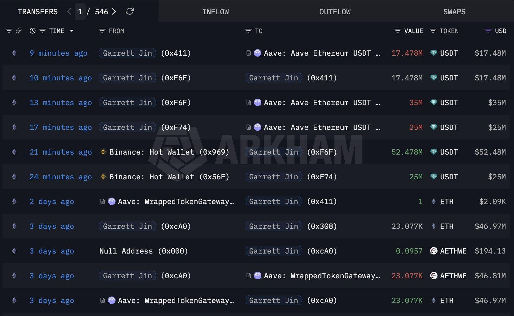 TechFlow rapporte que, le 10 février, selon la surveillance effectuée par la plateforme d’analyse en chaîne Lookonchain, Garrett Jin, surnommé « le manipulateur de marché intérieur détenteur de 10,11 BTC », a récemment retiré 77,48 millions de USDT depuis Binance et remboursé son prêt sur Aave.