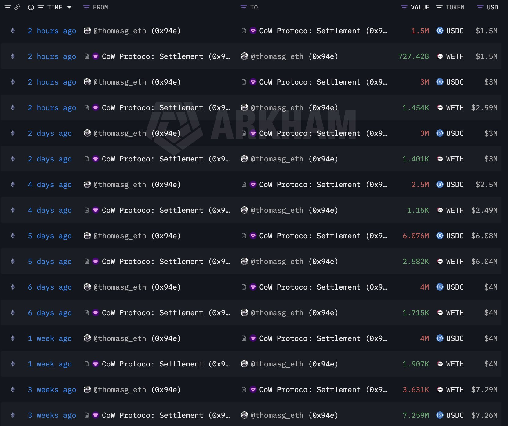 TechFlow rapporte que, le 23 mars, selon la plateforme d’analyse sur chaîne Lookonchain, l’ancien utilisateur d’Ethereum OG thomasg.eth (@thomasg_eth) a vendu 12 131 ETH le 3 mars à un prix moyen de 1 998 dollars, soit un montant total d’environ 24,24 millions de dollars américains. Au cours de la semaine suivante, il a racheté 10 209 ETH à un prix moyen de 2 211 dollars, pour un montant total d’environ 22,58 millions de dollars américains.