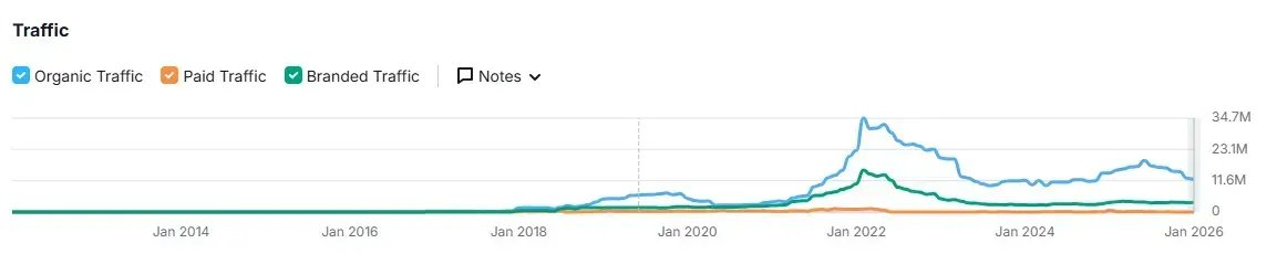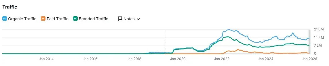 Binance、Coinbaseといった主要CEXのサイトトラフィックを見ると、2021年のバブル期のピーク以来、訪問数は継続的に減少しており、BTCが新高値を更新しても有意な回復は見られていない。隣のRobinhoodの盛況さとは対照的である。詳しくは昨年執筆した「Where are the marginal buyers」も参照のこと。