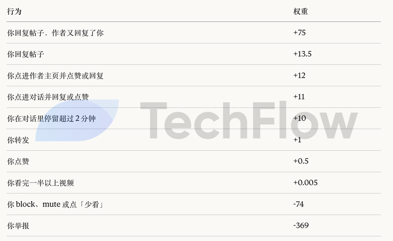 第四に、動画の再生完了率の重みが異常に低い。 たった0.005で、事実上無視できるレベル。これは抖音(ドウイン)やTikTokと鮮明な対比を成しており、後者のプラットフォームでは再生完了率が最も重要な指標の一つとなっている。