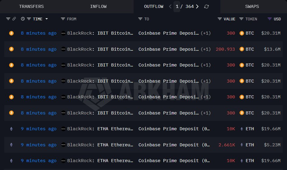 チェーン上分析プラットフォームOnchain Lens(@OnchainLens)の監視によると、ベライド(BlackRock)はCoinbase取引所に約1,700.93 BTC(約1億1,500万米ドル相当)および22,661 ETH(約4,455万米ドル相当)を送金しました。