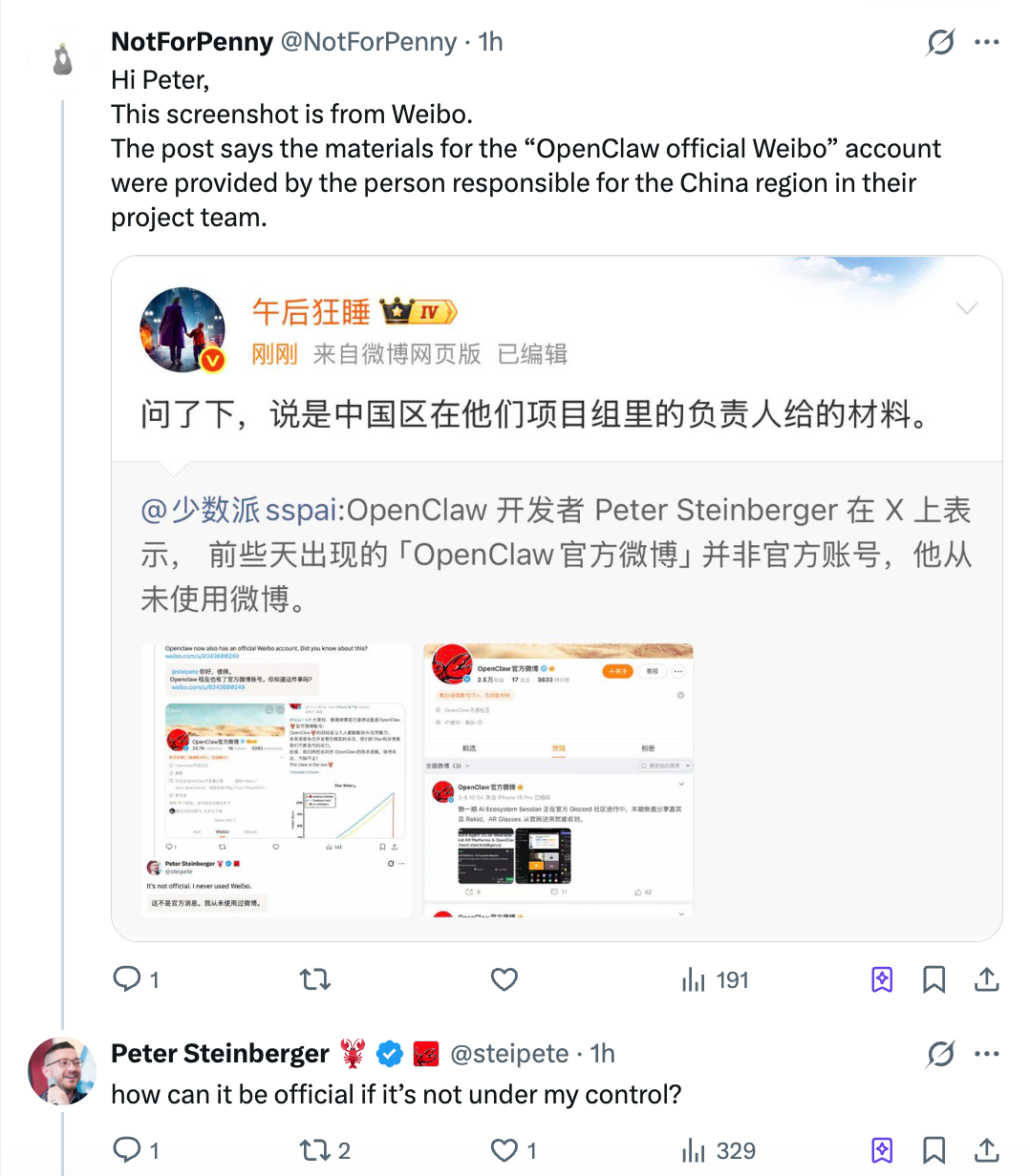 現時点において、新浪微博の運営側および「OpenClaw公式アカウント」は、この件について一切の公式見解を表明していません。