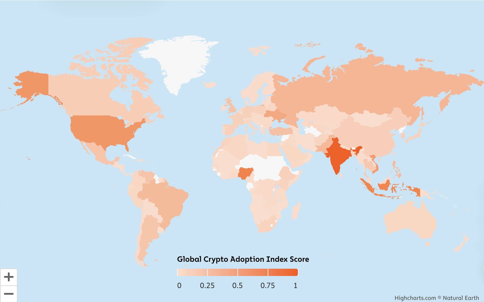 通过互动地图,查看您的国家在 2024 年 Chainalysis 全球加密货币采用指数中的排名。