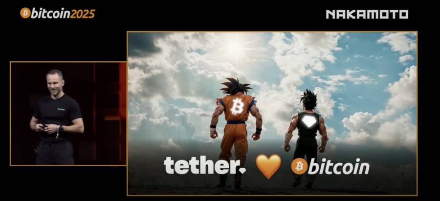 在 2025 年比特币大会的舞台中央,Tether 首席执行官 Paolo Ardoino 站在一幅悟空形象前表示,「比特币是我的悟空,是我们的朋友。」