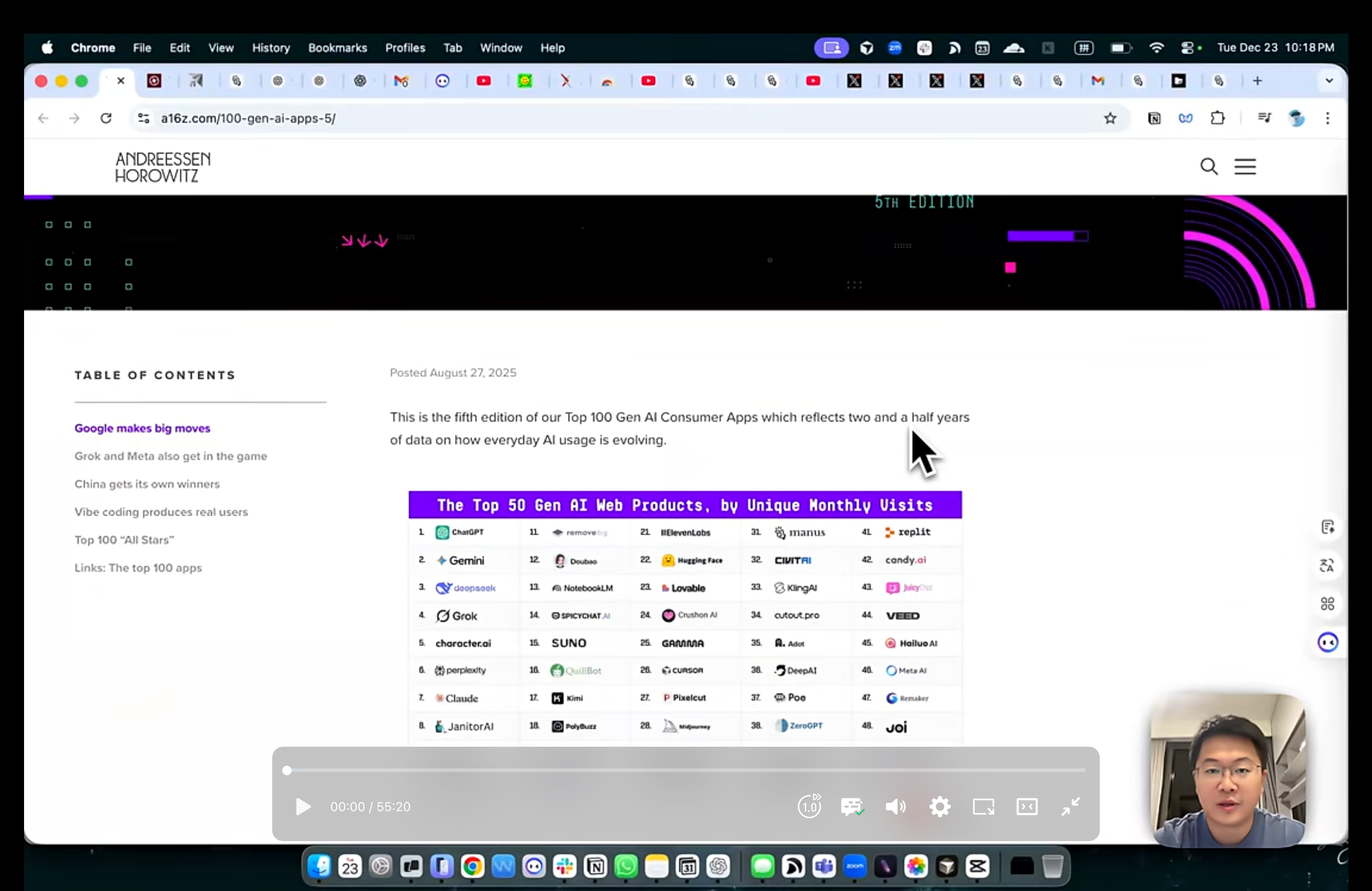 - 介绍公司主打产品 Master 和 Monica,以及它们在 A16Z榜单中的表现。