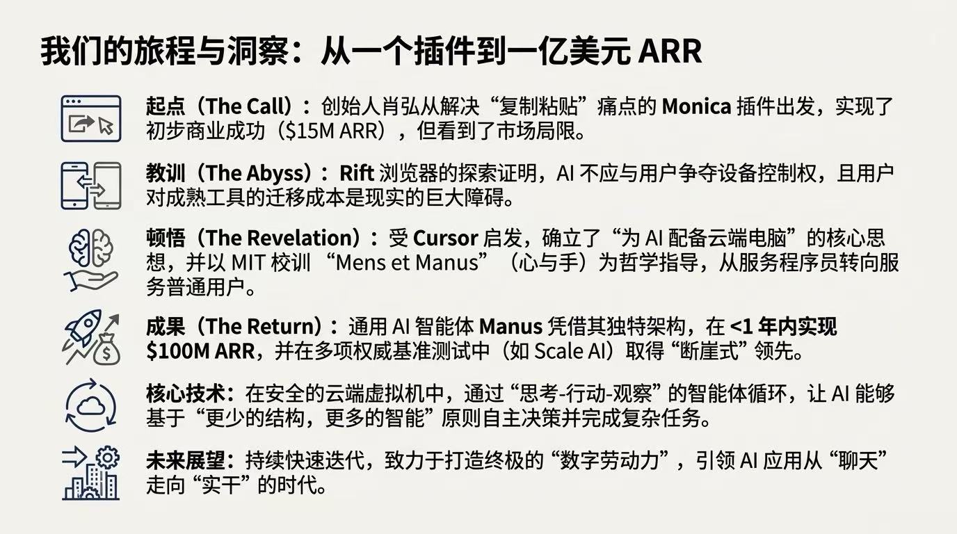 原标题:《分享一下我们是如何从 Monica 经过两次转型,来到 Manus 这个点子,以及发布后的一些经历,作为 2025 年末的一个总结吧》