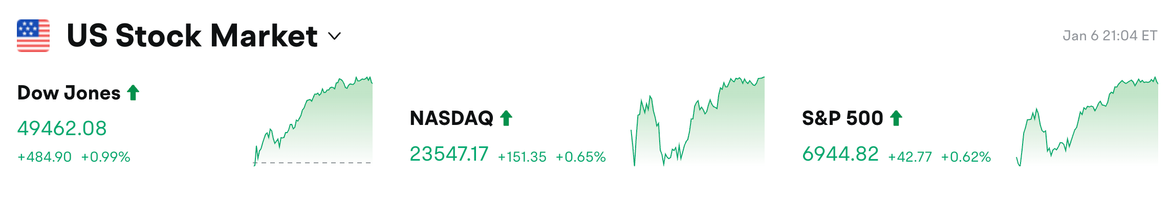 2. 미국 주식 시장: 다우 지수 +0.99%, 나스닥 지수 +0.65%, S&P 500 지수 +0.62%. 또한, CRCL (Circle) +0.06%; MSTR (Strategy) -4.1%, NVDA -0.47%.