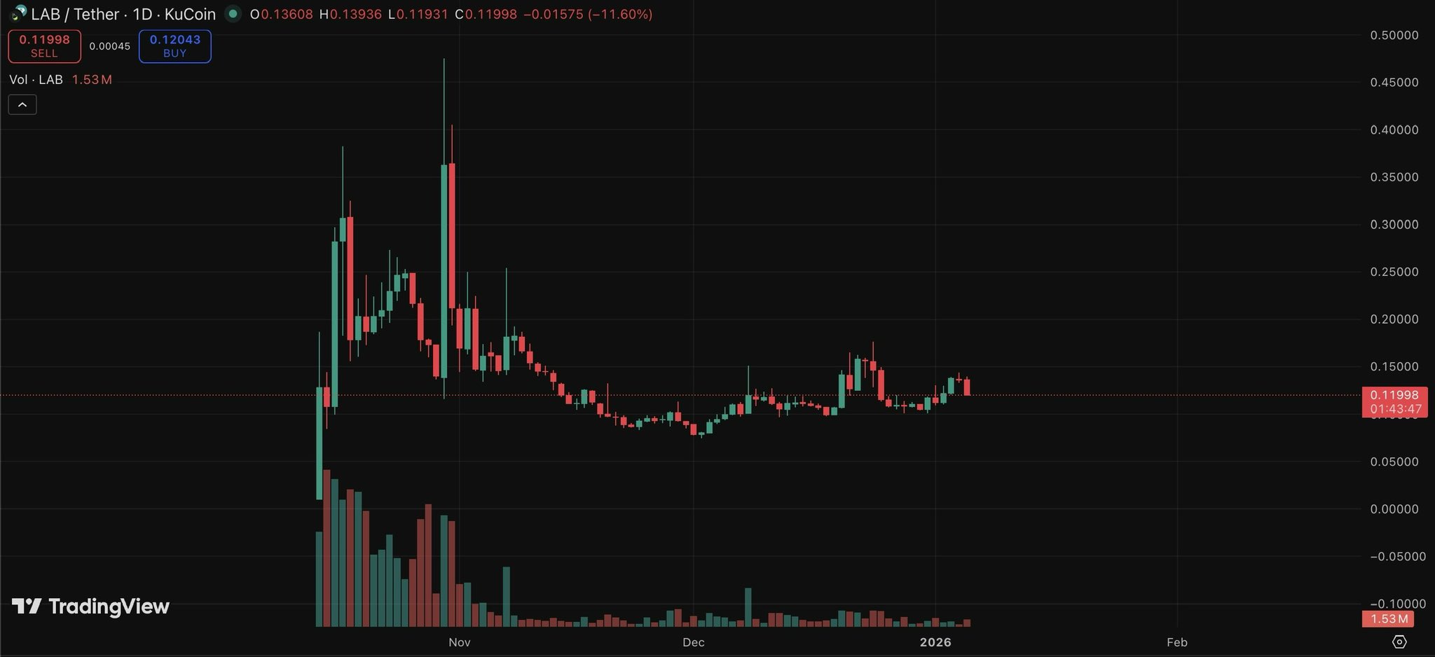 TechFlow 소식, 1월 6일, 이전에 "1011 내막 고래"를 발굴한 온체인 애널리스트 Eye가 X 플랫폼에 글을 올려 작년 10월에 출시된 크로스체인 거래 인프라 LAB이 지난 24시간 동안 강력한 펌프 앤 덤프 가격 흐름을 경험했다고 밝혔습니다. 가격이 단기간에 크게 상승한 후 빠르게 하락했으며, 분석에 따르면 누군가가 50% 할인된 가격으로 장외 거래(OTC)에서 토큰을 판매한 것으로 나타났습니다. 관련 조항에 따르면 거래자는 LAB의 투자자로 추정됩니다.