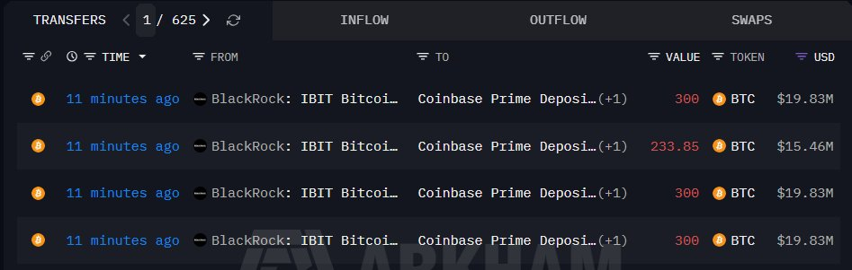 TechFlow 보도에 따르면, 3월 2일 체인상 모니터링 서비스 Onchain Lens의 관측 결과, 블랙록(BlackRock)이 지난 15분 동안 코인베이스(Coinbase)에 1,134개의 비트코인(BTC)을 입금했으며, 이는 약 7,495만 달러에 해당한다.