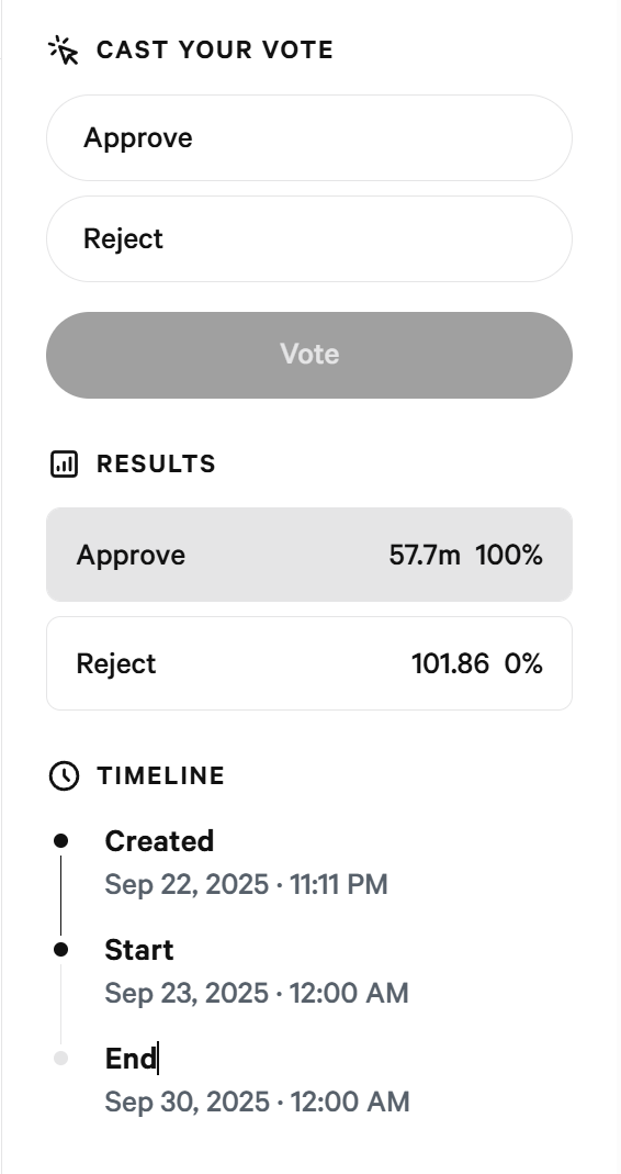 Lido 关于 LDO 回购相关提案当前支持率达 100%,截止日期为 9 月 30 日