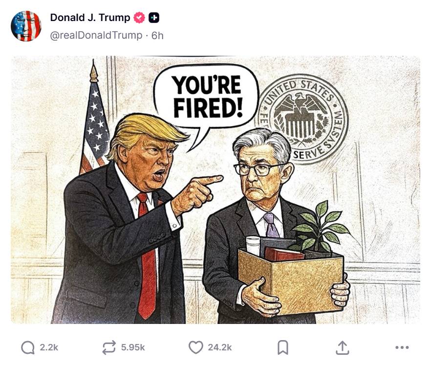 特朗普在社媒发卡通图片,或威胁“解雇”鲍威尔