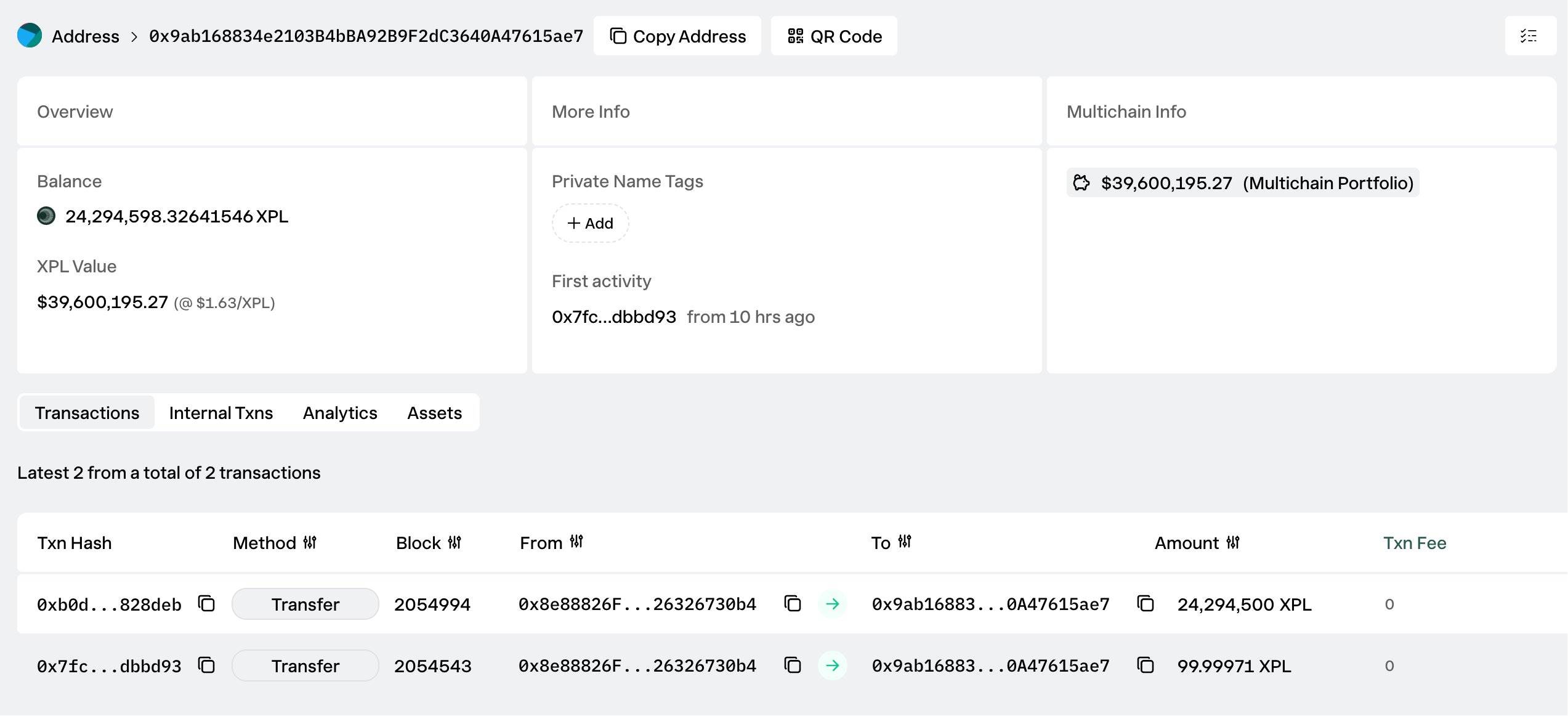 昨日重仓 2429 万枚 XPL 的巨鲸已将代币转移至 Plasma 主网