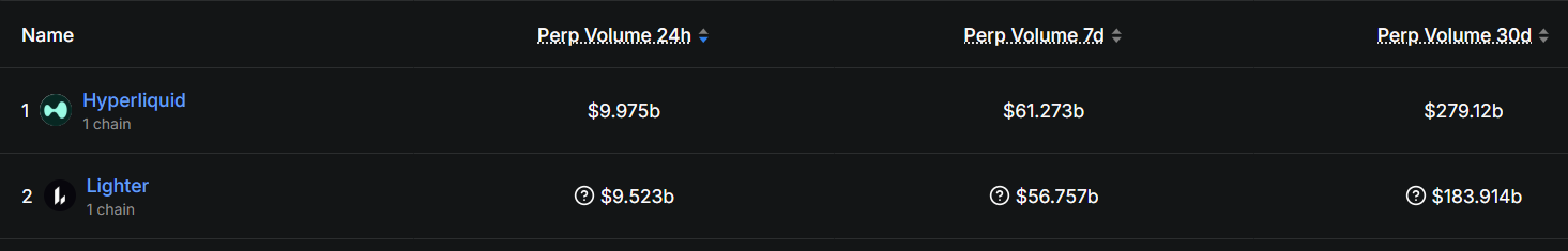 HyperLiquid 重返 Prep DEX 交易量排名第一,DefiLlama 协议费用排名暂未下架 Aster