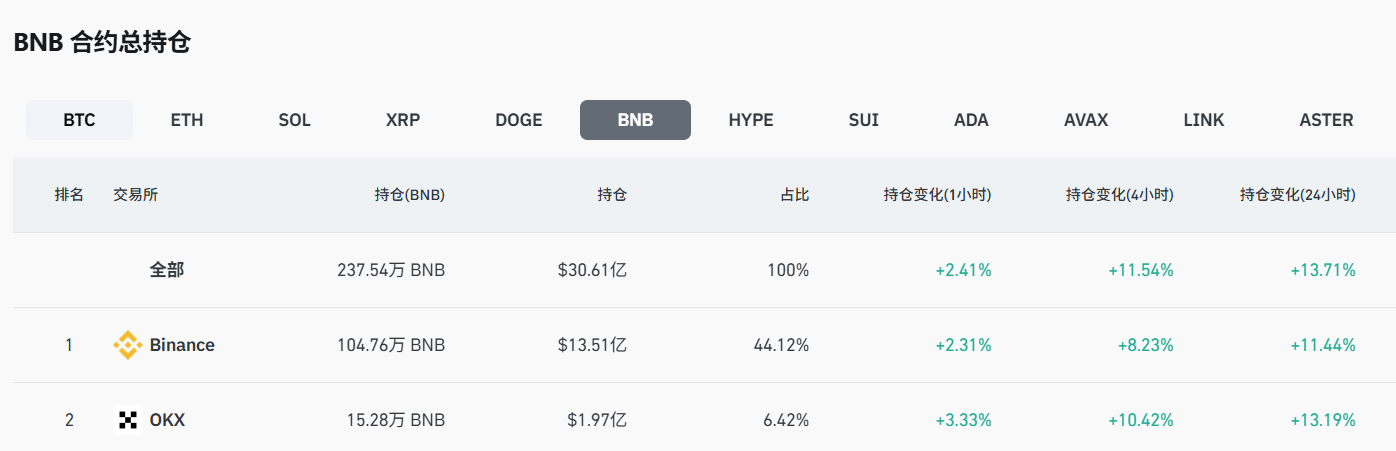 BNB 合约持仓规模突破 30 亿美元创历史新高,24 小时涨幅 13.71%