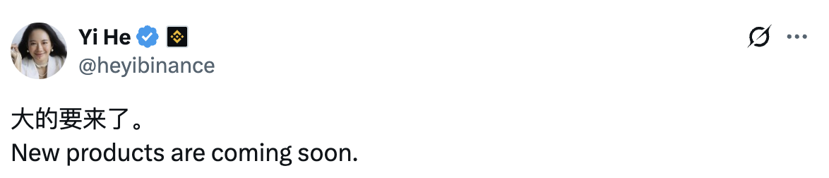 深潮 TechFlow 消息,10 月 9 日,币安联合创始人何一发文表示,「大的要来了。New products are coming soon.(新产品即将推出。)」