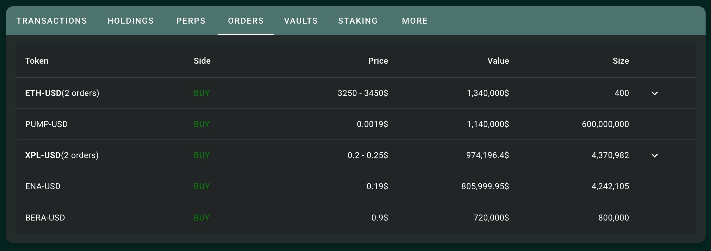 曾狙击内幕哥的「猎鲸小分队」的领队 KOL CBB 向 Hyperliquid 充值 500 万 USDC 设置多币种抄底订单