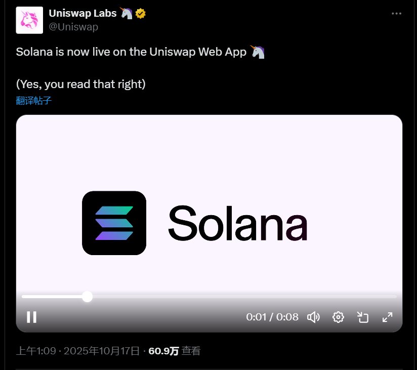 深潮 TechFlow 消息,10 月 17 日,据官方公告,Uniswap Web App 新增支持 Solana 网络,代币兑换由 Jupiter 提供支持。未来官方将扩展跨链、跨链兑换和 Uniswap 钱包支持。