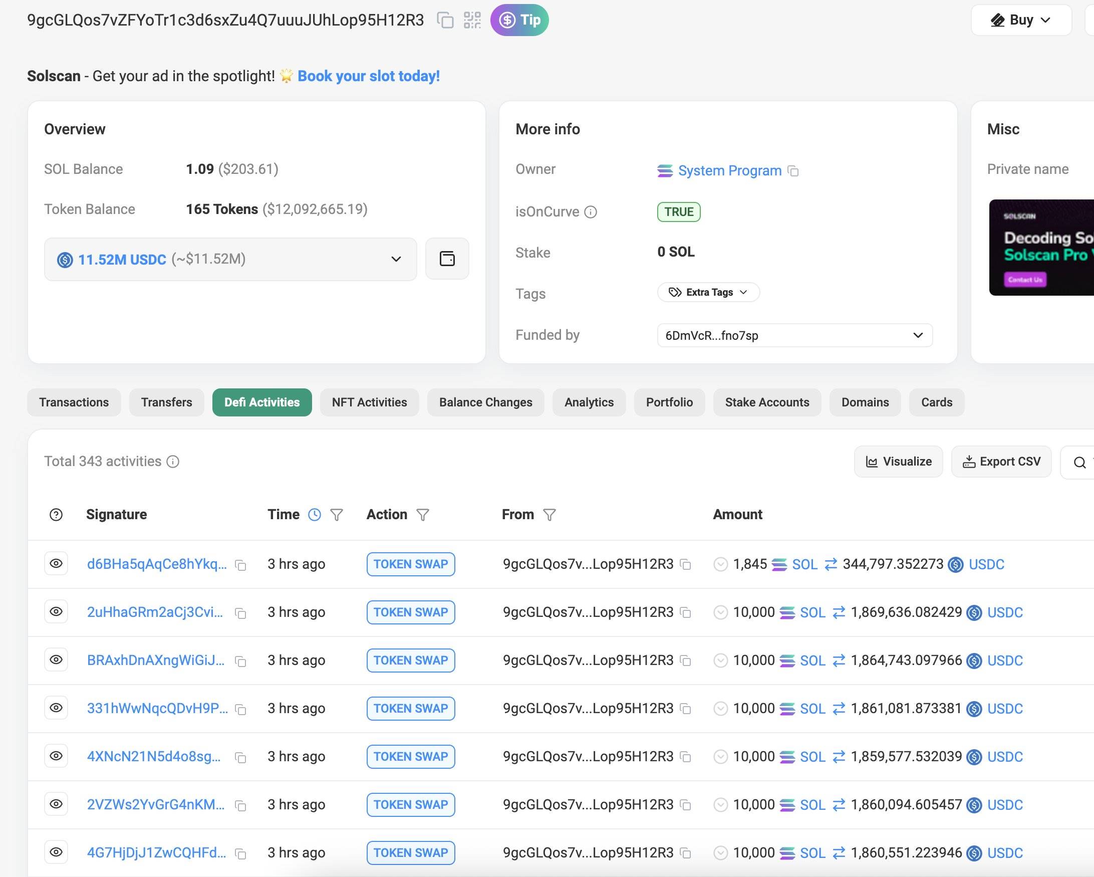 某聪明钱三小时前以 186 美元价格出售 61,845 枚 SOL,价值 1152 万美元