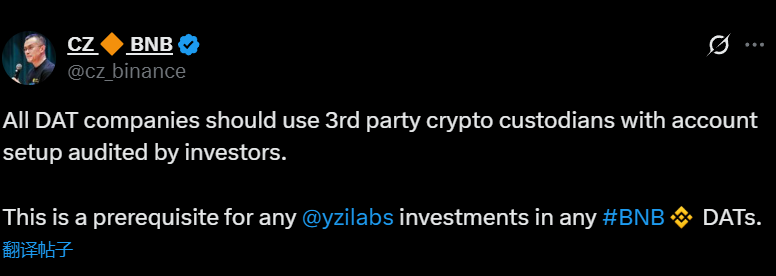 这是 YZi Labs 对任何 BNB DAT 进行投资的先决条件。