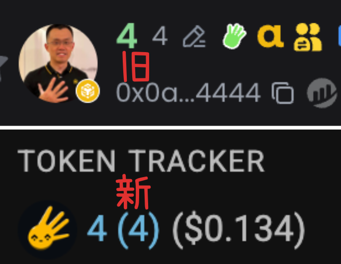 该代币原先使用 CZ 做手势的图片作为标识,现已改为卡通图案图片 4。目前 BSCScan 已显示新 Logo,但部分 Meme 工具尚未更新相关信息。