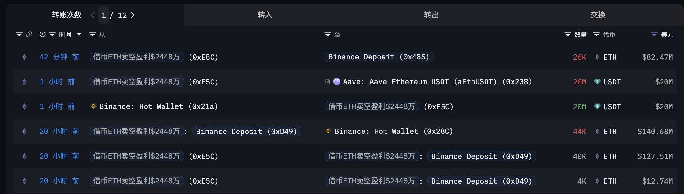 “曾卖空 ETH 盈利 2448 万美元的巨鲸”再次向币安转入 2.6 万枚 ETH,价值 8247 万美元