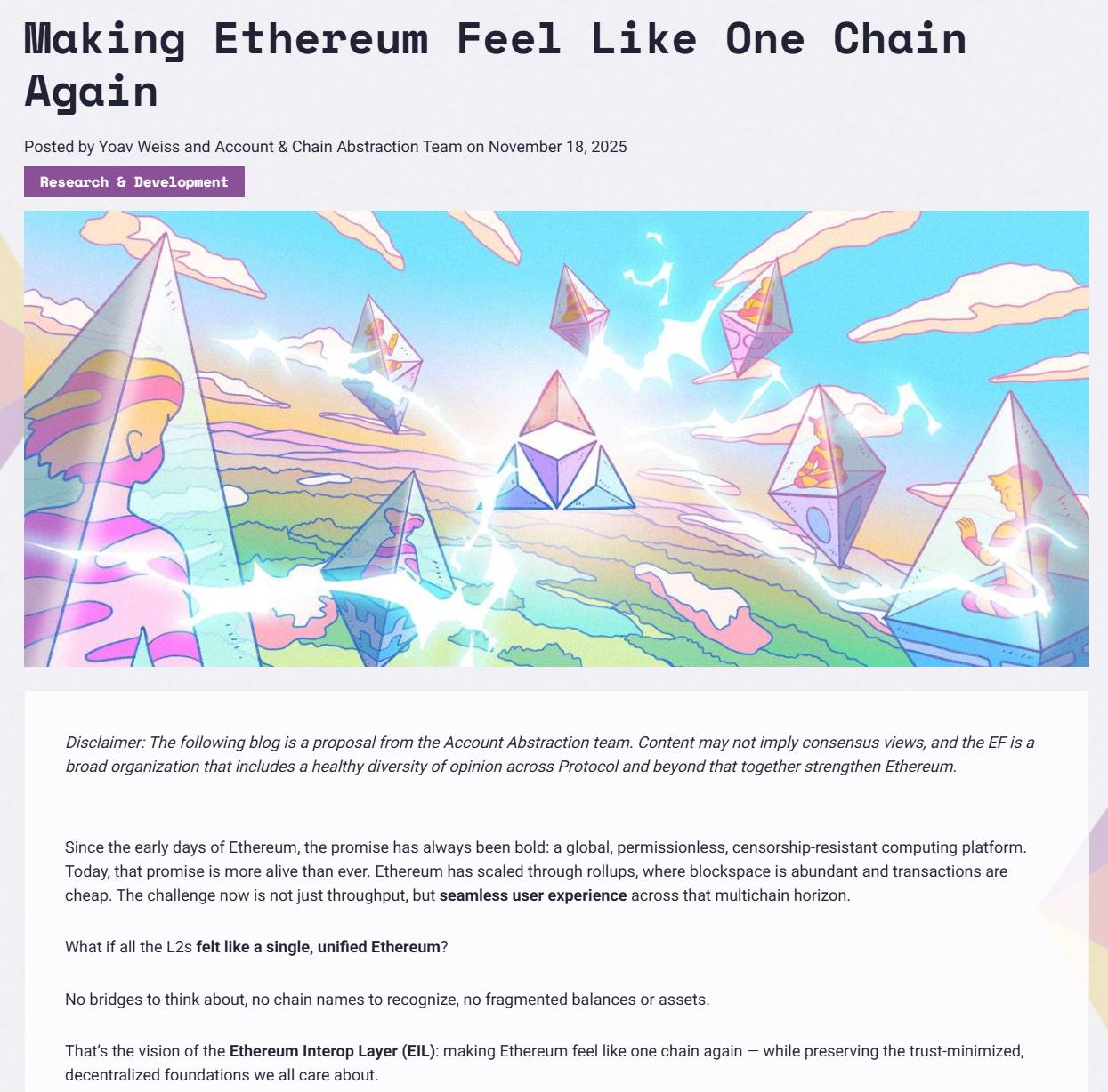以太坊基金会提出 Ethereum Interop Layer 方案,旨在优化 L2 用户体验