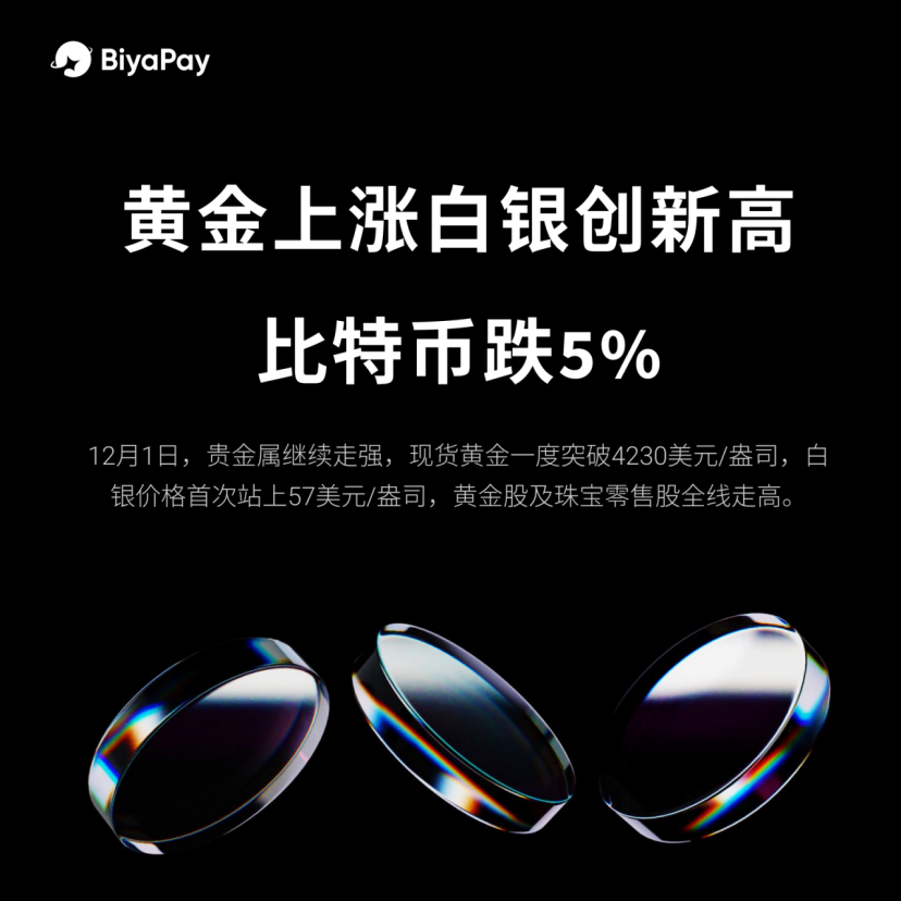 BiyaPay分析师:黄金上涨白银创新高,比特币跌5%