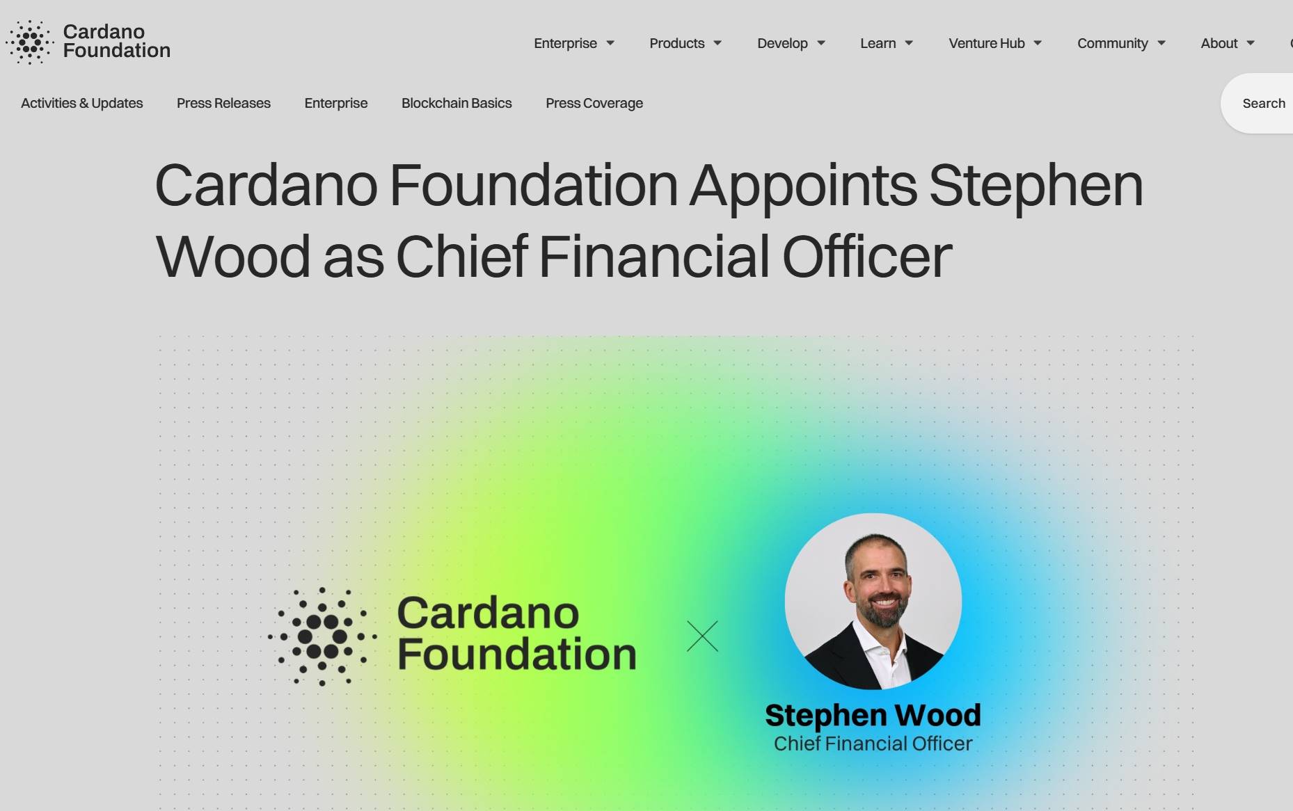 Cardano 基金会任命 Stephen Wood 为首席财务官
