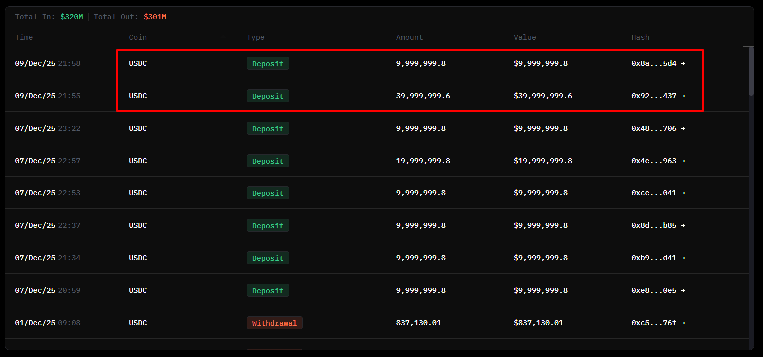 深潮 TechFlow 消息,12 月 10 日,据 Onchain Lens 监测,某比特币早期持有者(OG)向 HyperLiquid 平台追加存入 5000 万美元 USDC,累计存入资金达 1.2 亿美元。该地址在 3280 美元价位下单,进一步增持 ETH 5 倍杠杆多头仓位。