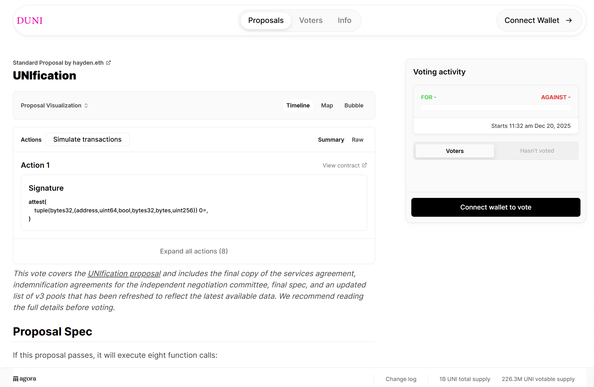 深潮 TechFlow 消息,12 月 18 日,据 Uniswap 创始人 Hayden Adams 披露,已提交 Unification 提案进行最终治理投票。投票将于 12 月 19 日美东时间晚 10:30 开始,12 月 25 日结束。
