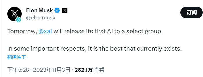 Elon Musk:xAI 将于明日公布首个 AI 项目