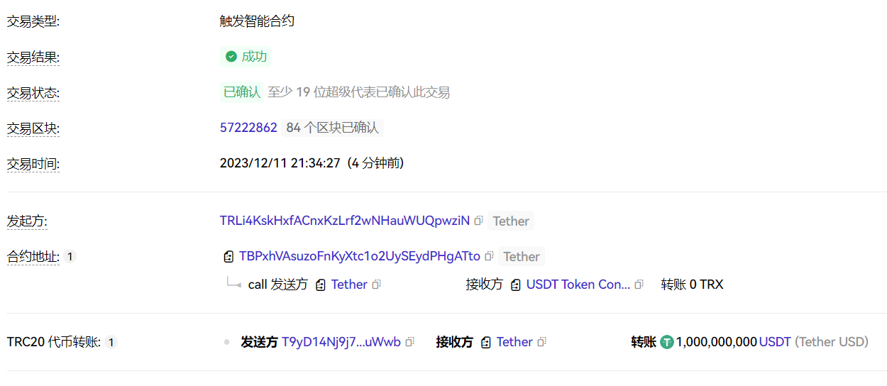 深潮 TechFlow 消息,据OKLink数据显示,Tether于TRON上增发十亿枚USDT。