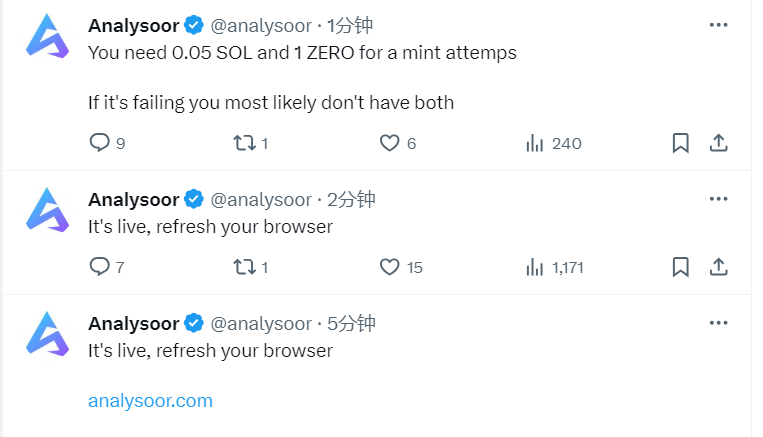 Analysoor:WHEN铸造网站已上线,需要0.05 SOL和1 ZERO才能进行mint