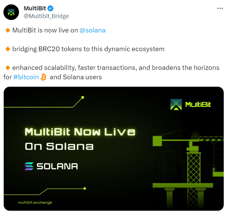 深潮 TechFlow 消息,BRC20跨链桥MultiBit在X宣布,MultiBit现已上线Solana,将 BRC20 代币与Solana生态连接起来,增强可扩展性、加快交易速度。