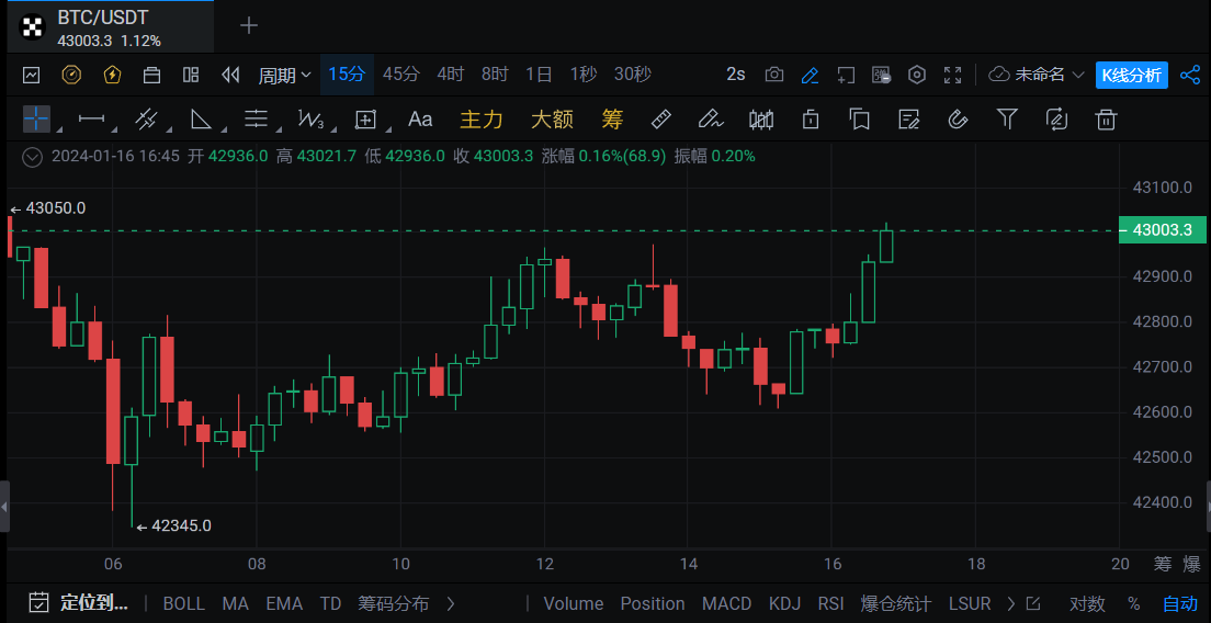 深潮 TechFlow 消息,据OKX行情显示,BTC突破43000美元,现报43003.3美元,日内涨幅达到1.12%。