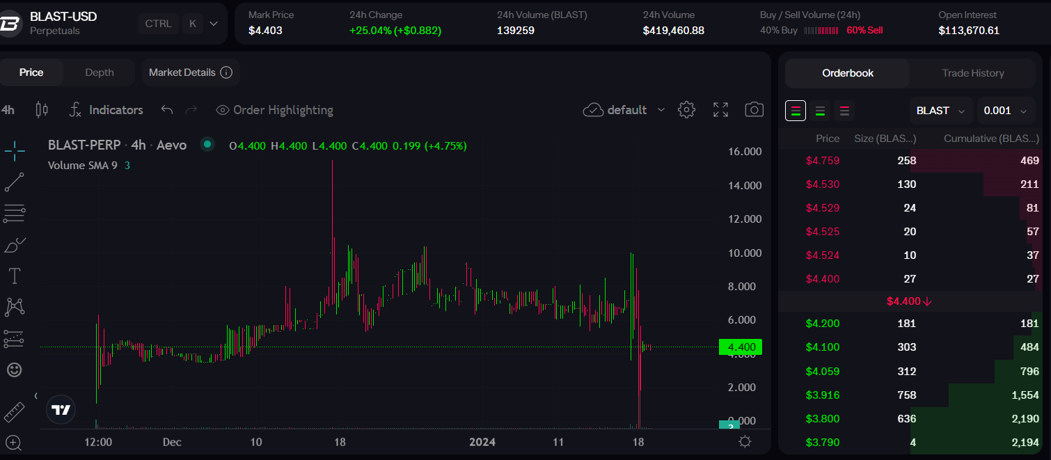 Aevo上BLAST期货价格暂报4.403美元,24小时涨幅为25.04%