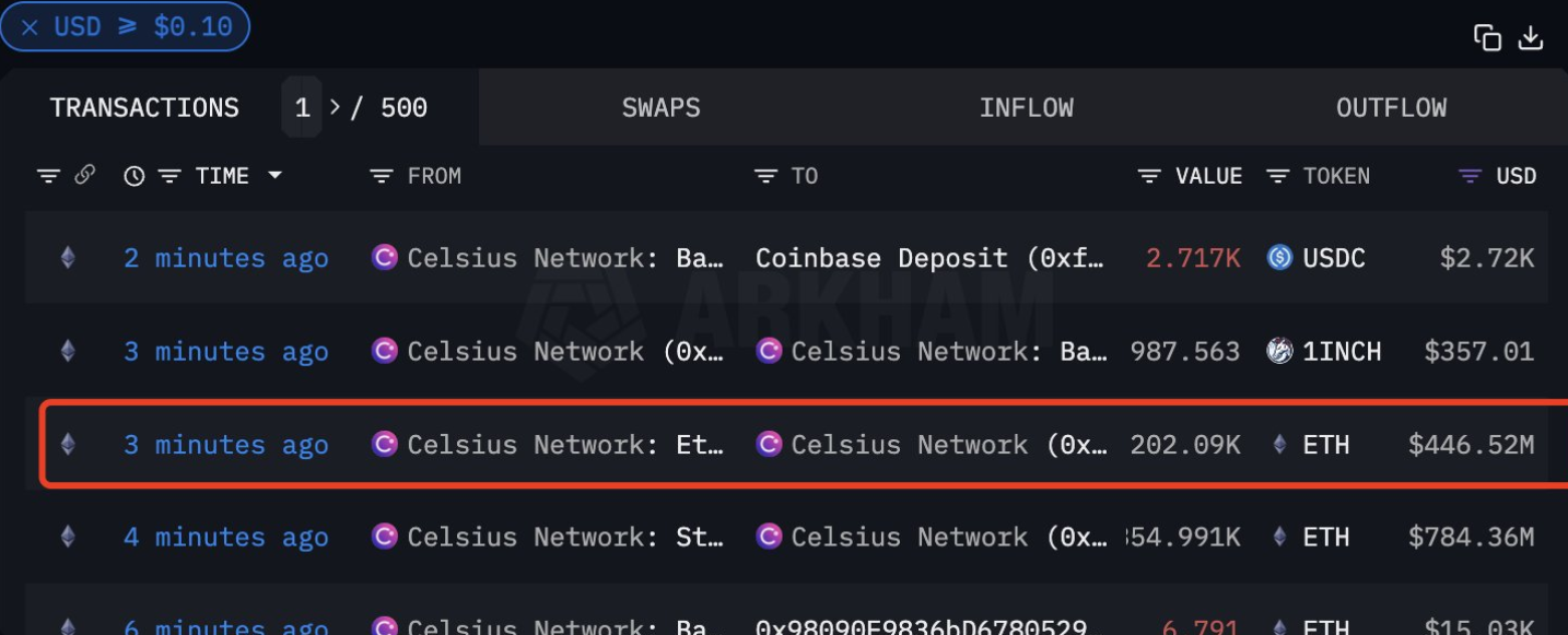 Celsius解除约4.46亿美元ETH的质押,暂未转移或卖出