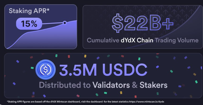 dYdX Chain已分发超350万枚USDC给超10,200名质押者