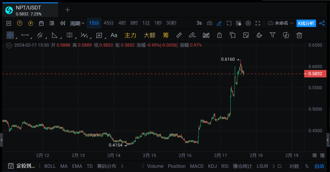深潮 TechFlow 消息,2月17日,或受 Klaytn 与 Finschia 合并影响,Neopin 代币 $NPT 24小时涨幅 26%,最高触及 $0.616。