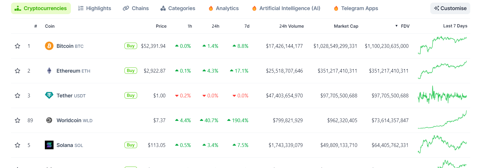 深潮 TechFlow 消息,据Coingecko数据显示,Worldcoin FDV超越Solana,排名第四。目前Worldcoin FDV约为736.14亿美元,Solana FDV约为644.06亿美元。