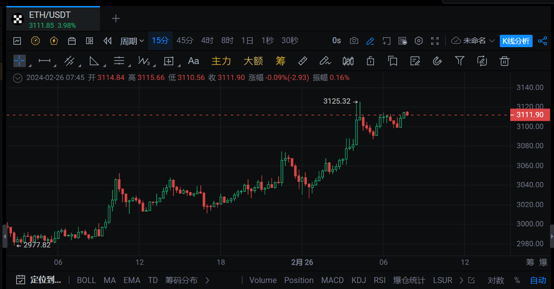 深潮 TechFlow 消息,据OKX数据显示,ETH突破3100美元,现报3111.85美元,日内涨幅达3.98%。