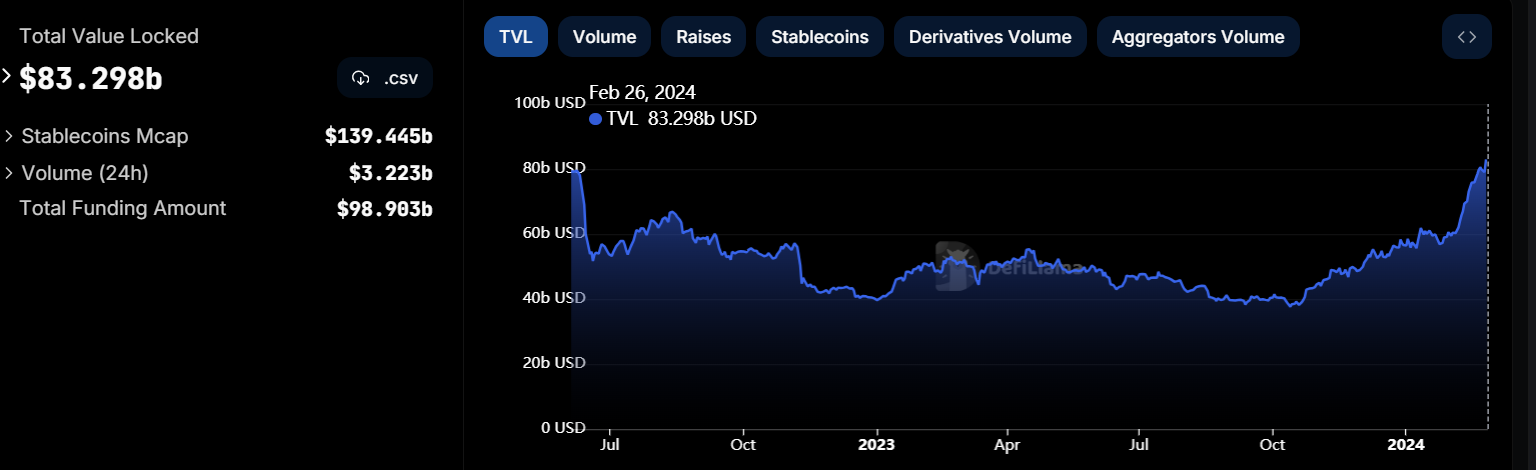 全网DeFi协议TVL突破830亿美元,创22年5月来新高