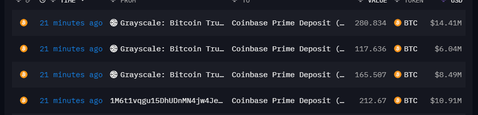 Arkham:灰度21分钟前向Coinbase转账776.6枚BTC,价值约3980万美元