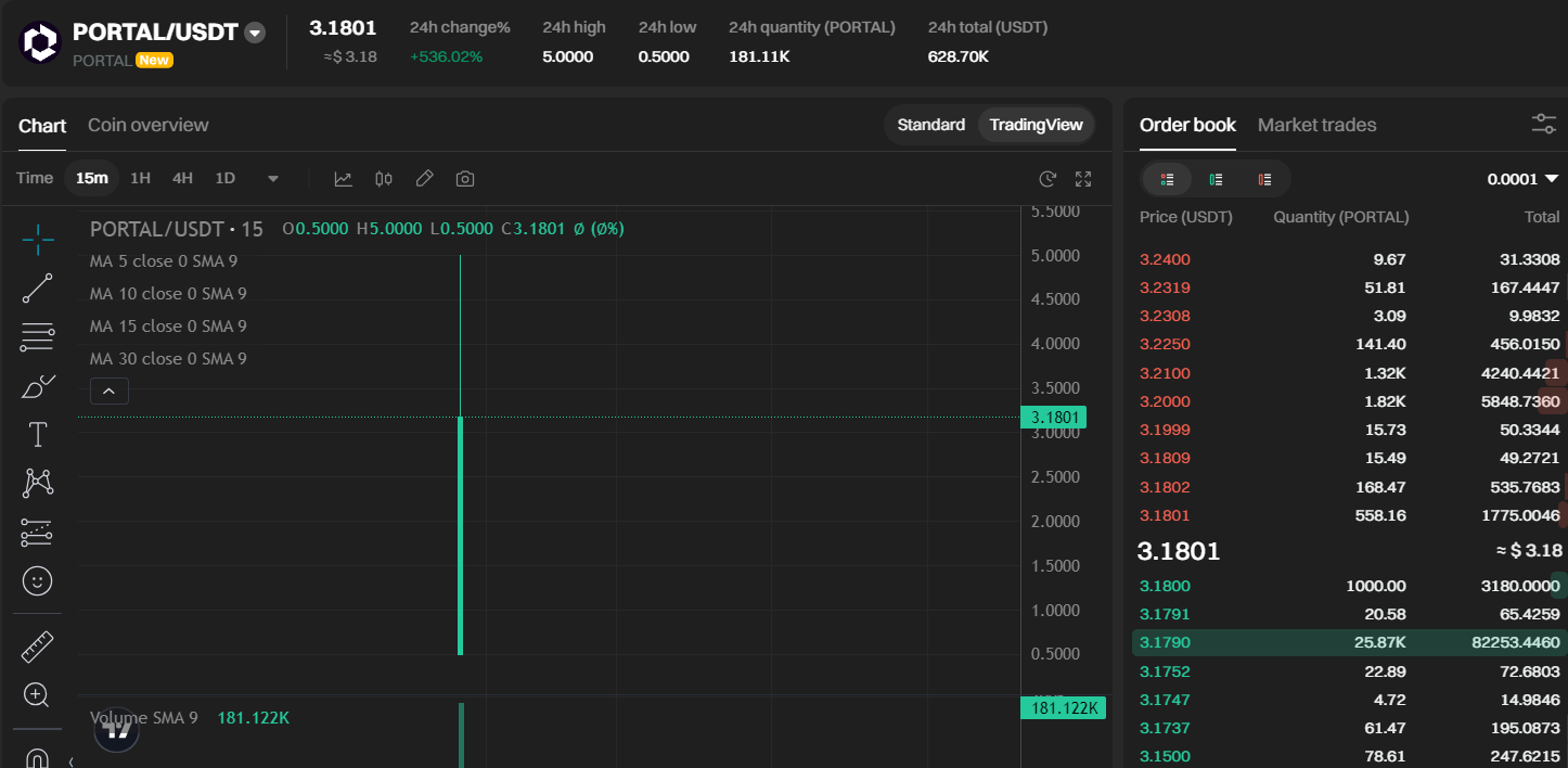 深潮 TechFlow 消息,据Bitget行情数据显示,PORTAL 开盘最高触及 5美元,现报 3.1801美元。